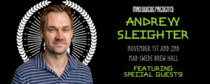 Andrew Sleighter started in comedy looking for the perfect funny line to open a biography. Since then, Andrew’s laid-back style and clever writing has won him appreciation from fans and respect from his peers.